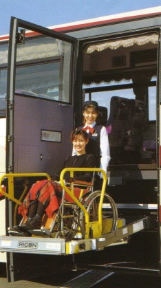 24~45人乗り(補助席含む) 車輌の仕様、料金についてはお問合せ下さい。 大型バス・中型バス・小型バスにはリフト付き観光バスがあります。車椅子でのご旅行も快適。サロンスペースがご利用可能な車種もあります。 人数や用途に応じていろいろなタイプのバスがあります。 車椅子のまま乗車して、車内で車椅子を固定できるものや、リフトで乗車して普通席に座るタイプなど・・・・。 詳しくは当社係員にご相談下さい 主な車内装備品の例 VTR、DVD 冷蔵庫 カラオケ 座席表の例 印刷用(PDF形式)はこちら。 リフト付バスについて 乗車人員 24~45人 価格 車輌の仕様、料金についてはお問合せ下さい。 高速料金 特大車 備考